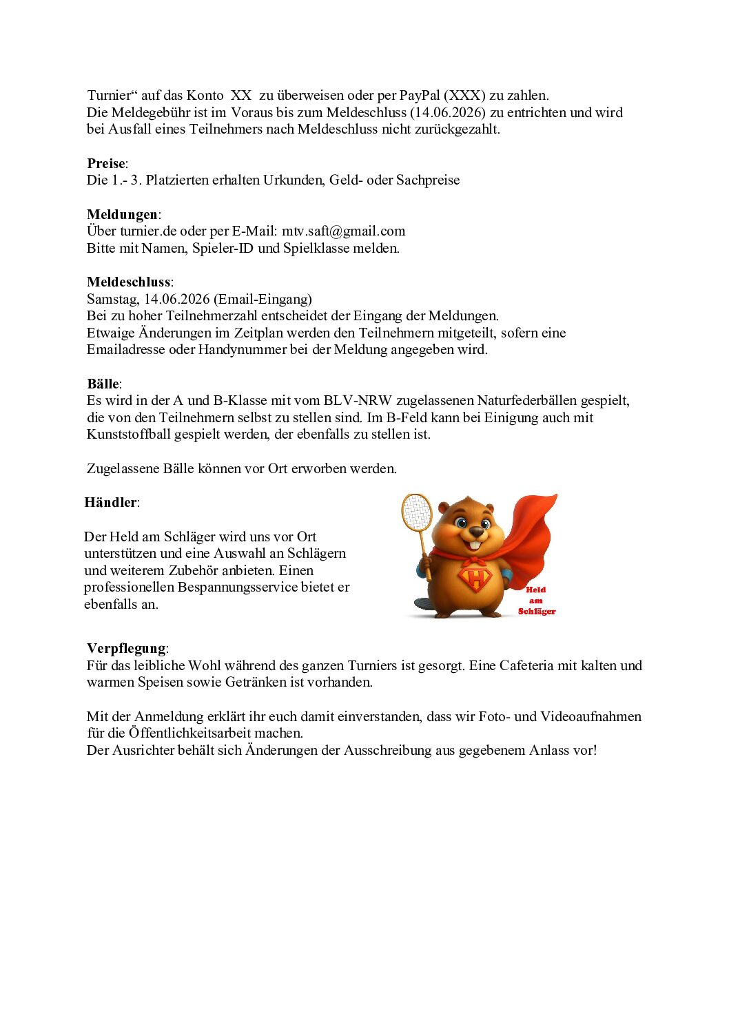 Ausschreibung 1. SAFT-Turnier 2026